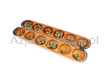 Tradycyjna plansza oware składana. Wykonana w całości z afrykańskiego drewna osese. Zestaw składa się z tradycyjnych nasion rośliny Cæsalpinia bonduc. 48 szt.