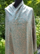 Beżowy turkusowy elegancki szal z drobnymi wzorami Praisley. Wzory z drugiej strony są ręcznie przecinane w tradycyjny sposób. Latem może służyć jako zwiewna etola, chusta. Zimą i jesienią jako szal, który przyjemnie otula szyję. Łatwo daje się układać, dlatego można go nosić na wiele sposobów. Produkt nie gryzący, miły w dotyku.