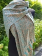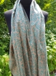 Beżowo turkusowy elegancki szal ze barwnymi wzorami Praisley. 100% modalu.