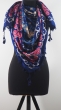 Chusta granatowa różowa z frędzlami w stylu etno i boho.