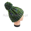 Ciepła czapka męska zimowa Zielony warkocz z pomponem