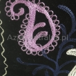 Czarna torba orientalna udekorowana tradycyjnymi barwnymi wzorami Suzani, przedstawiająca kwiaty i roślinność.