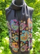 Czarny elegancki szal ze barwnymi wzorami Praisley. Wzory z drugiej strony są ręcznie przecinane w tradycyjny sposób. Latem może służyć jako zwiewna etola, chusta. Zimą i jesienią jako szal, który przyjemnie otula szyję. Łatwo daje się układać, dlatego można go nosić na wiele sposobów. Produkt nie gryzący, miły w dotyku.