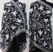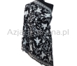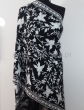 Czarny wełniany szal ze srebrnym haftem w kwiaty i frędzlami