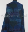 Granatowy szal w połączeniu z niebieskim i innymi odcieniami granatu świetnie współgrają geometrycznymi wzorami.