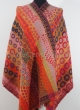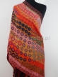 Pomarańczowo ognisty szal dwustronny w kuleczki i frędzlami ze 100% wełny z merynosów australijskich. Gatunek Premium.