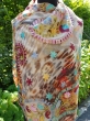 Damski szal merino wyszywany z printem fantazyjnym w kwiaty liście Paisley ze 100% wełny z merynosów australijskich, wielokolorowy.