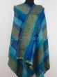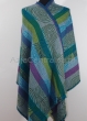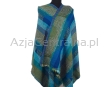 Damski dwustronny szal w odcieniach turkusu, khaki, niebieskiego ze 100% wełny z merynosów australijskich. Gatunek Premium.