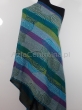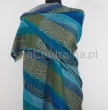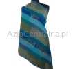 Szal jest w paski w odcieniach turkusu, khaki, niebieskiego. Wykonany ze 100% wełny z merynosów australijskich. Gatunek Premium.