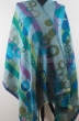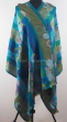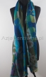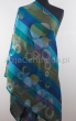 Damski dwustronny szal w odcieniach turkusu, khaki, niebieskiego granatu ze 100% wełny z merynosów australijskich. Gatunek Premium.