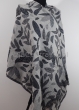 Subtelny czarno biały szal dwustronny w liście ze 100% wełny z merynosów australijskich. Gatunek Premium.
