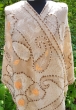 Jasno brązowy duży wełniany szal wyszywanych pięknych jesiennych kolorach podkreśli indywidualny wygląd jesiennej i zimowej kreacji i nadadzą jej niepowtarzalnego szyku i elegancji.