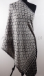 Damski dwustronny szal czarny i biały we wzory zygzaki ze 100% wełny z merynosów australijskich. Gatunek Premium.