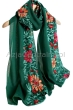 Duży miękki szal ZIELONY haftowany w kwiaty