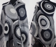 Duży damsko męski dwustronny szal w fantacyjne kuleczki w odcieniach szarości od białego do czarnego. Wykonany ze 100% wełny z merynosów australijskich. Bardzo miękki i nie gryzie.