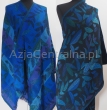 Ciemno granatowy szal dwustronny w liście ze 100% wełny z merynosów australijskich. Gatunek Premium.