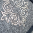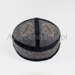 Krymka uszyta z czterech kawałków w ciemno szarym kolorze i wykończona czarnym sztruksem lub aksamitem.