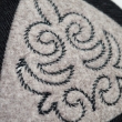 Krymka uszyta z czterech kawałków w ciemno beżowym kolorze i wykończona sztruksem brązowym kolorze.