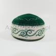 Krymka mycka (czapka) męska z kolorze butelkowej zieleni i białym.