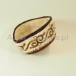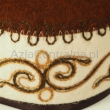 Krymka uszyta z ręcznie filcowanej wełny merynosów i wyhaftowana. W wewnętrznej jego części jest wszyta podszewka z bawełny.
