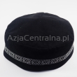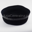 Klasyczna krymka (topu, tiubetejka, takyja, jarmułka, kippah, duppi, taqiyah) okrągła męska czarna z aksamitu z taśmą dekoracyjną