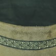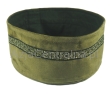 Męska lub damska czapka krymka zamszowa (mycka, takyja, tubeteika, tiubietejka, jarmułka) w kolorze zieleń zgniła khaki z etniczną taśmą dekoracyjną boho. Obwód głowy: 55-65 cm.