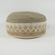 Letnia cienka męska czapka bez daszka - Krymka (fez, mycka, tubeteika, topu, takyja, tiubietejka, jarmułka) klasyczna beżowa z bawełnianą taśmą wstążką w stylu boho i etnicznym. Rozmiar regulowany: 56-60cm.