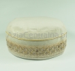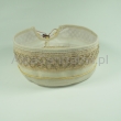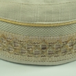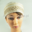 Letnia cienka męska czapka bez daszka - Krymka (fez, mycka, tubeteika, topu, takyja, tiubietejka, jarmułka) klasyczna kremowa ecru z bawełnianą taśmą wstążką w stylu boho i etnicznym. Rozmiar regulowany: 56-61cm.