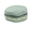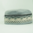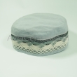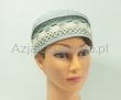 Letnia cienka damska lub męska czapka bez daszka - Krymka (fez, mycka, tubeteika, topu, takyja, tiubietejka, jarmułka) klasyczna lniana jasnoszara z ozdobną bawełnianą wstążką w stylu boho i etnicznym. Rozmiar regulowany: 56-61cm.