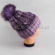 Ciepła czapka zimowa z pomponem MELANŻ FIOLETOWY