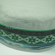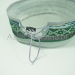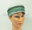 Letnia cienka męska czapka bez daszka - Krymka (fez, mycka, tubeteika, topu, takyja, tiubietejka, jarmułka) klasyczna lniana jasnoszara z wielokolorowa ozdobną czarno i zieloną wstążką w stylu boho i etnicznym. Rozmiar regulowany: 56-61cm.