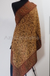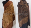 Szal jest w klasycznych wzorach Praisley jest w jesiennych odzcieniach brązu, złota, burgund bordowym i czarnym. Wykonane z 100% wełny z merynosów australijskich. Gatunek Premium.