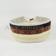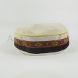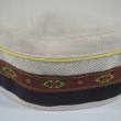 Letnia cienka męska czapka bez daszka - Krymka (fez, mycka, tubeteika, topu, takyja, tiubietejka, jarmułka) klasyczna lniana kremowa z ozdobną bawełnianą ozdobą w moro. Rozmiar regulowany: 56-61cm.