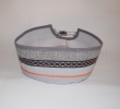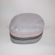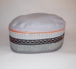 Letnia cienka męska czapka bez daszka - Krymka (fez, mycka, tubeteika, topu, takyja, tiubietejka, jarmułka) klasyczna lniana jasnoszara z ozdobną wstążką w stylu boho i etnicznym. Rozmiar regulowany: 56-60cm.