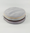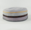 Letnia cienka męska czapka bez daszka - Krymka (fez, mycka, tubeteika, topu, takyja, tiubietejka, jarmułka) klasyczna lniana jasnoszara z ozdobną wstążką w stylu boho i etnicznym.Rozmiar regulowany: 56-61cm.