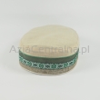 Letnia cienka męska czapka bez daszka - Krymka (fez, mycka, tubeteika, topu, takyja, tiubietejka, jarmułka) klasyczna beżowo zielona z bawełnianą taśmą wstążką w stylu boho i etnicznym. Rozmiar regulowany: 56-61cm.