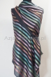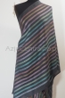Bardzo elegancki dwustronny szal z wełny merynosów, połączony z jedwabiem. Szal w kolorze grafitowym doskonale dobranymi paskami w różnych odcieniach: od turkusu do różu. Włókna jedwabne nadają delikatności i lekkości o naturalnym połysku. Wełna daje przyjemne odczucie ciepła. Nowoczesny dizajn powoduje, iż przeznaczony tak dla Pań jak i dla Panów. Doskonale nada się jak na ciepłe tak i zimniejsze jesienne-zimowe dni.