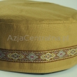 Męska czapka krymka (mycka, takyja, tubeteika, tiubietejka, jarmułka) klasyczna musztardowa z taśmą dekoracyjną w odcieniach brązu. Dostępne wymiary: 55-65.