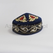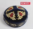 Tradycyjna krymka kazachska (topu, takija, tiubetejka, jarmułka) granatowa czapka męska ze środkowoazjatyckimi wzorami etnicznymi.