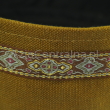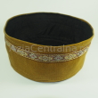 Męska czapka bez daszka - Krymka (mycka, tubeteika, topu, takyja, tiubietejka, jarmułka) klasyczna lniana musztardowa z tasiemką dekoracyjną. Rozmiary: 55-64 cm.