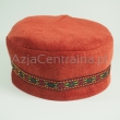 Męska czapka bez daszka - krymka (mycka, tubeteika, topu, takyja, tiubietejka, jarmułka) pomarańczowa klasyczna z welurowego sztruksu z taśmą dekoracyjną. Rozmiary: 56 cm.