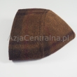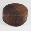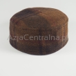 Męska czapka bez daszka tradycyjna krymka (mycka, topu, takyja, tubeteika, tiubietejka, jarmułka) wełniana z okrywą karmelowa w kratę.