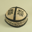 Krymka uszyta z czterech kawałków filcowanej wełny merynosów i wykończona sztruksem szarym kolorze. Czapka posiada haft koczowników. Cała zfilcowana powierzchnia jest pikowana.