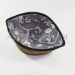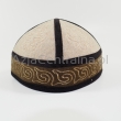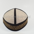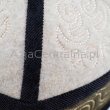 Krymka uszyta z czterech kawałków filcowanej wełny merynosów i wykończona czarnym kolorze. Czapka posiada haft koczowników. Cała zfilcowana powierzchnia jest pikowana.
