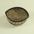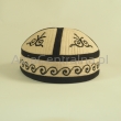 Krymka uszyta z czterech kawałków filcowanej wełny merynosów i wykończona czarnym kolorze. Czapka posiada haft koczowników. Cała zfilcowana powierzchnia jest pikowana.