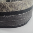 Krymka jest uszyta z tkaniny grubej, przyjemnej w dotyku oraz bardzo wytrzymałej. Tkana w stylowe pasy o szerokości ok. 5cm. Wzór tworzą szare kolory szenila na przemian z ozdobnym żakardem w kolorze beżowym. Połyskujące nici nadaje niepowtarzalny wygląd. W środku czapki jest podszewka z cienkiejbawełny, która charakteryzuje się wysokim komfortem noszenia.