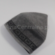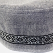 Męska czapka bez daszka na wiosnę, lato i wczesną jesień - krymka (mycka, topu, takyja, tubeteika, tiubietejka, jarmułka) szara / popiel z taśmą we wzory etniczne czarno / srebne z podszewką. Rozmiary 55-64 cm.