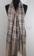 Męsko damski dwustronny beżowy szal w angielską kratę z wełny merynosów i jedwabiu
