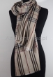 Bardzo elegancki dwustronny duży szal z wełny merynosów, połączony z jedwabiem. Beżowy podstawowy kolor szalu doskonale współgra z klasyczną angielską kratkę w odcieniach brązu i bordo. Włókna jedwabne nadają delikatności i lekkości o naturalnym połysku. Wełna daje przyjemne odczucie ciepła. Nowoczesny dizajn powoduje, iż przeznaczony tak dla Pań jak i dla Panów. Doskonale nada się na ciepłe i zimniejsze jesienne-zimowe dni.