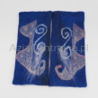 Ręcznie filcowane mitenki granatowe z wełny udekorowana jedwabnym wzorem